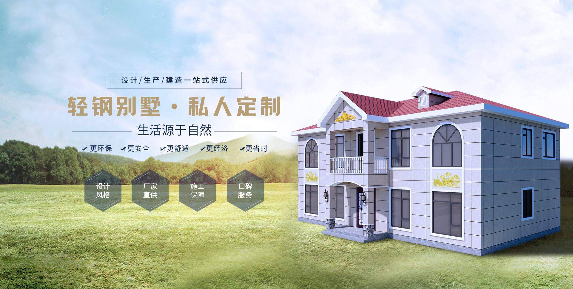 專業的設計師團隊,個性化定制輕鋼別墅高端住宅,擁有多年項目施工經驗,完成上千套鋼結構房屋的施工,完善的售后服務,讓您建房無憂!